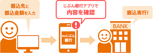 振込み1件ごとに、じぶん銀行アプリの[アプリ設定]より承認手続きを行ってください。